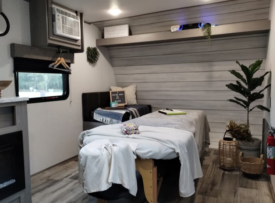 No more stressful traveling when the spa can come to you! Relax in the tranquil spa environment to escape your everyday stress and pain without ever leaving your driveway. A trailer customized for clients convenience to self-care.